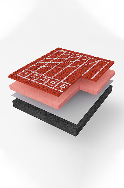 自結紋耐磨面層紋理美觀、耐候性強,防滑(hua)性能好(hao),能有效避免潮(chao)濕天(tian)氣(qi)的運動打滑(hua)現象。
