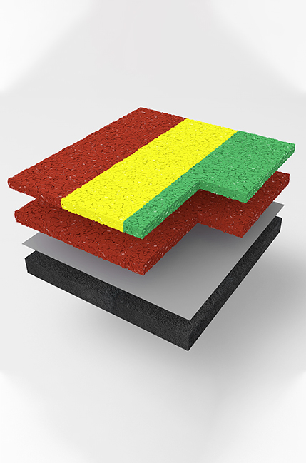 EPDM 面(mian)層(ceng)是(shi)由底涂、彈性(xing)(xing)顆(ke)(ke)粒中(zhong)層(ceng)、面(mian)層(ceng)組(zu)成(cheng)的運動場地。底涂為(wei)單(dan)組(zu)分聚(ju)氨酯(zhi)膠(jiao)黏(nian)劑,與(yu)空氣中(zhong)的濕氣反應(ying)固(gu)化;彈性(xing)(xing)顆(ke)(ke)粒中(zhong)層(ceng)由 PSV-211 單(dan)組(zu)分專(zhuan)用(yong)膠(jiao)黏(nian)劑與(yu) EPDM 顆(ke)(ke)粒按照1:6~1:7 的質量比混合(he)后攤鋪(pu)而成(cheng);面(mian)層(ceng)由 PSV-303EPDM 顆(ke)(ke)粒面(mian)膠(jiao)、EPDM 顆(ke)(ke)粒按照 1:6 質量比混合(he)后攤鋪(pu)于(yu)彈性(xing)(xing)顆(ke)(ke)粒中(zhong)層(ceng)上固(gu)化而成(cheng)。