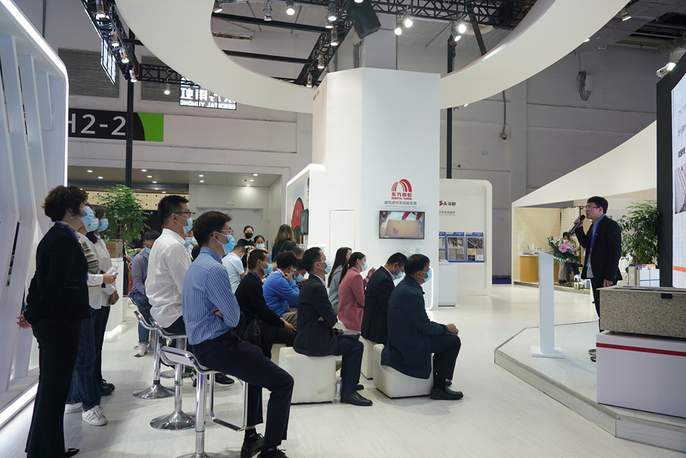 在眾(zhong)多展(zhan)位(wei)中(zhong),臥(wo)牛山(WONEWSUN)展(zhan)位(wei)脫(tuo)穎(ying)而出(chu),其(qi)高質量的(de)創新產品與強有力的(de)技術優勢備(bei)受關(guan)注,吸引了大量參展(zhan)人(ren)員及媒體(ti)駐(zhu)足(zu)詢問(wen)。此外(wai),臥(wo)牛山(WONEWSUN)聚焦(jiao)碳(tan)達峰、碳(tan)中(zhong)和與建筑(zhu)業的(de)有效銜接,緊(jin)扣展(zhan)會主(zhu)題(ti)及本土化保溫政(zheng)策(ce)進行《上海新政(zheng)后墻體(ti)內外(wai)保溫裝飾推薦》專(zhuan)項宣講,為(wei)該政(zheng)策(ce)提(ti)出(chu)合(he)理解決方案,并展(zhan)示應對此政(zheng)策(ce)的(de)節能、保溫、裝飾相關(guan)產品,詮釋“韌(ren)性(xing)城市,低碳(tan)生活(huo)”。