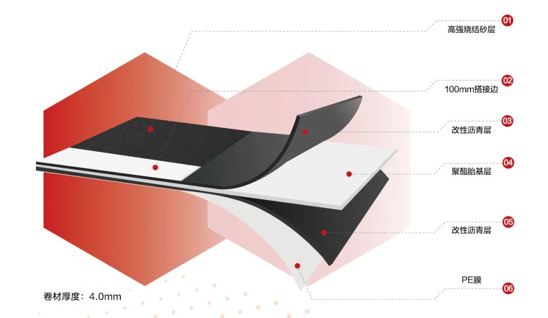 此(ci)外(wai),卷材可與東方雨虹TZH特種非(fei)固化橡膠瀝(li)(li)青(qing)防(fang)水(shui)涂料/太空堡SBS改性瀝(li)(li)青(qing)防(fang)水(shui)卷材/PMB-741等配套使用,滿足(zu)更高防(fang)水(shui)等級設防(fang)要求。
